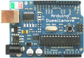 Arduino Duemilanove, pero con una presentación diferente. No posee conector